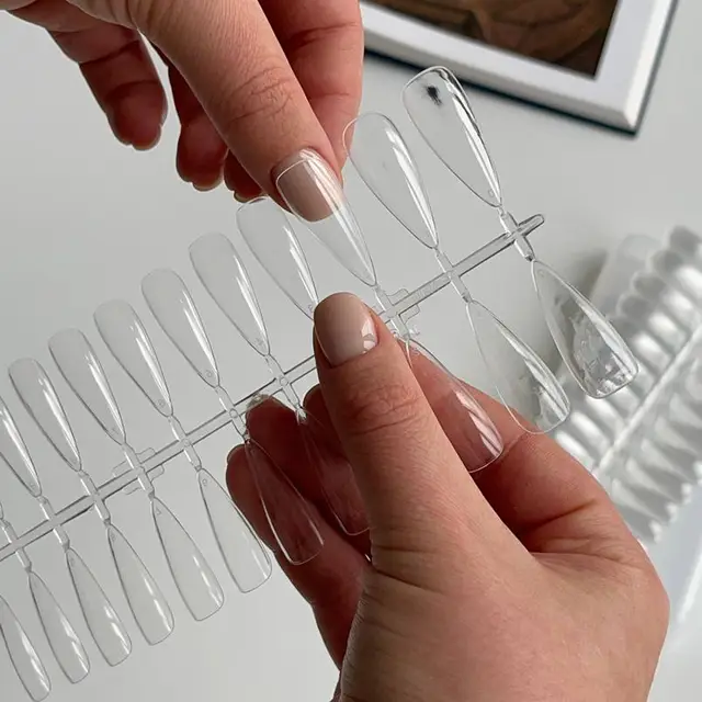 Для виготовлення типсів використовується абсолютно безпечний для здоров’я матеріал. Вони повністю повторюють форму нігтя.