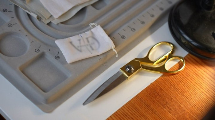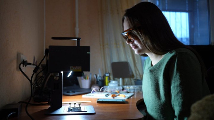 Валентина під час роботи над гравіюванням прикрас. Суспільне Запоріжжя