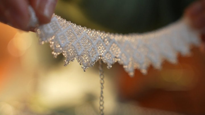 Перша створена Валентиною прикраса — стрічковий ґердан. Суспільне Запоріжжя