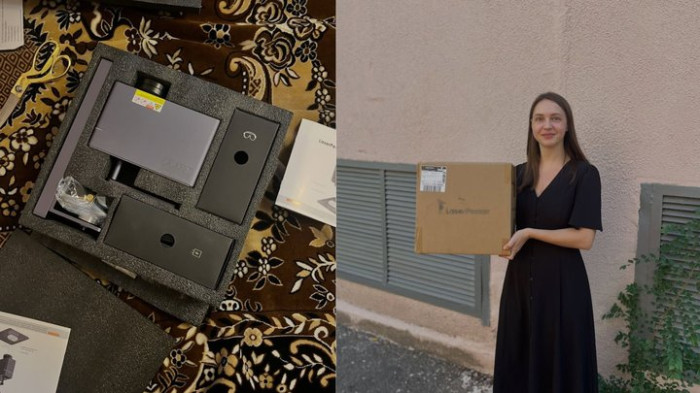 Валентина розпаковує перший лазерний апарат для гравіювання прикрас. З особистої сторінки Валентини Instagram