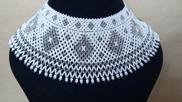 Саморобна традиційна прикраса силянка з білого бісеру . Суспільне Запоріжжя