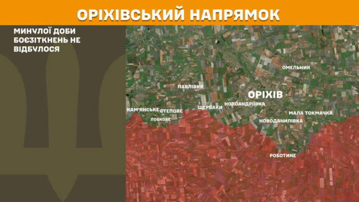 На Гуляйпільському напрямку Сили оборони зупинили три спроби ворога просунутися вперед поблизу Новополя та Новосілки. На Оріхівському напрямку минулої доби боєзіткнень не відбулося.