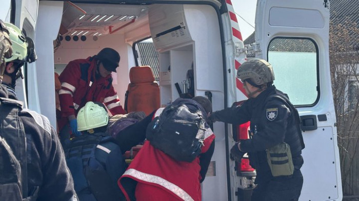 Екстрені служби деблокували одну з поранених внаслідок російського обстрілу Запоріжжя, 16 березня 2026 року. Суспільне Запоріжжя
