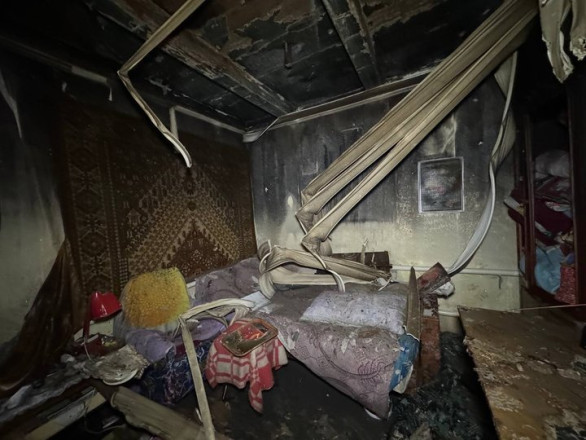 "Ми чули, як шахед летів, а потім вибух — його збили. Вікно посипалось. В один момент — загорілось одразу. Ми вискочили, двоє хлопців прибігли допомогти, але горіло вже. Встигли винести 2 холодильники".