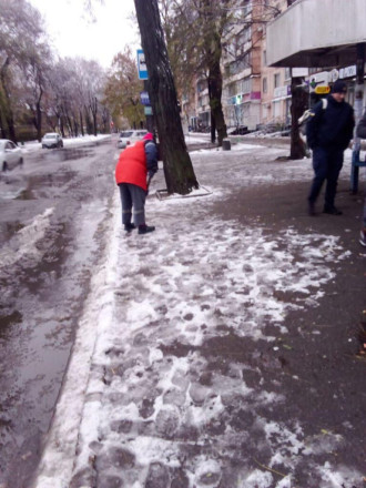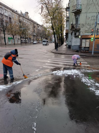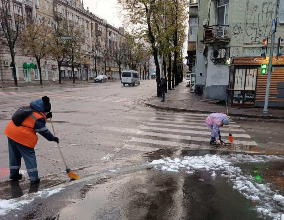 Ввечері, 19 листопада, у Запоріжжі почались мокрий сніг з дощем, така погода збереглася до ранку 20 листопада. На вулицях працюють комунальні служби.