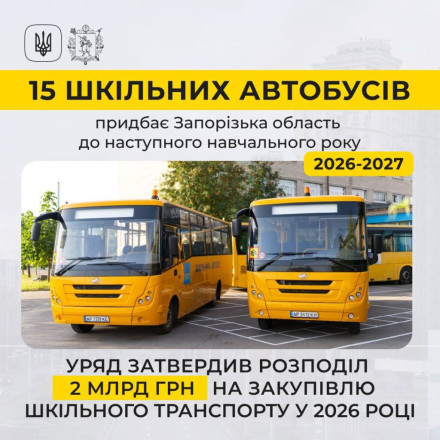 В його рамках до наступного навчального 2026/2027 року Запорізька область придбає 15 шкільних автобусів.