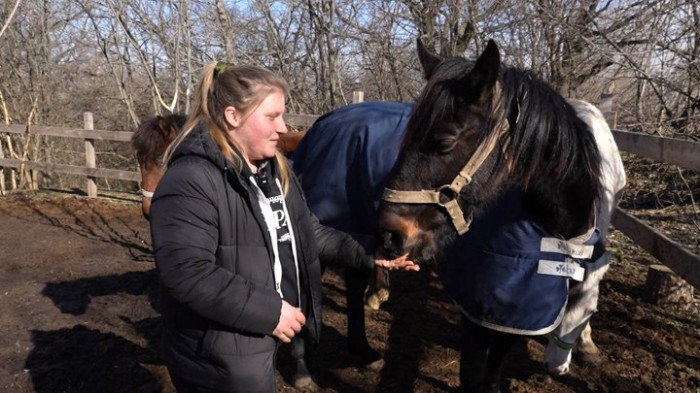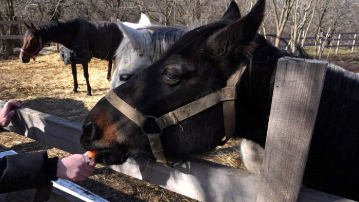 "Розминка носить лоша і має народити наприкінці осені. Вона любить ласувати яблуками та морквою. Сіра конячка у нас найбільший панікер. Але ми почали з нею спілкуватися, і вона вже почала довіряти людям і вже до неї навіть можна підійти і погодувати. Взагалі, ми їх гладили, давали їм ласощі для того, щоб вони розуміли, що вони в безпеці. Вони вже настільки адаптувалися, що починають виходити і гуляти територією".