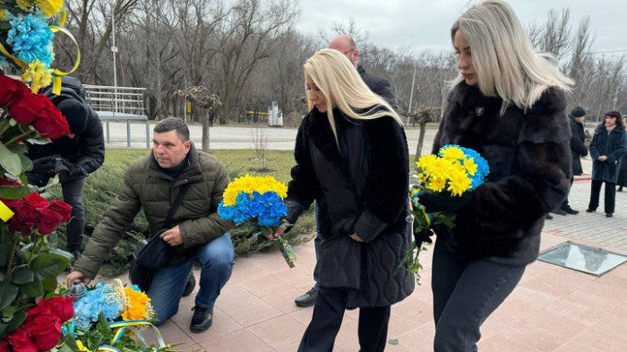 До меморіалу "Честь і Гідність" жителі Запоріжжя принесли квіти та вшанували полеглих хвилиною мовчання.
