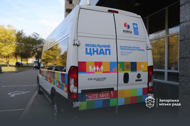 Запоріжжя отримало від Програми розвитку ООН (ПРООН) мобільний ЦНАП. Це спеціально обладнане авто, у якому облаштовані робочі місця для надання адміністративних послуг.