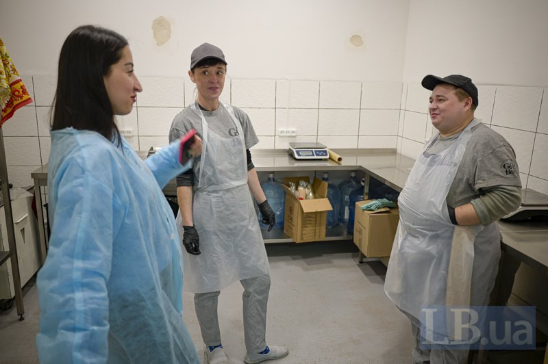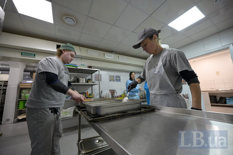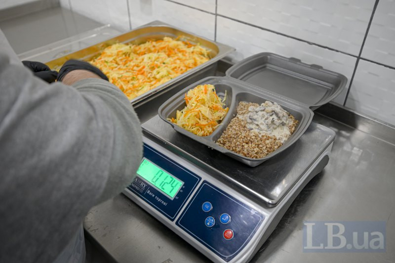 На пакувальному столі в кожного окремі ваги. Денис накладає в лотки гречку, зважує, передає Наталі. Наталя — котлети із соусом, зважує, передає Саші. Саша додає салат з капусти, смак якого теж розхвалюють на кухні: «Без кислинки й аж солодкий». Далі наповнені ланч-бокси передають Дімі й Вані. Хлопці загортають кожен у фольгу і складають у термосумки.