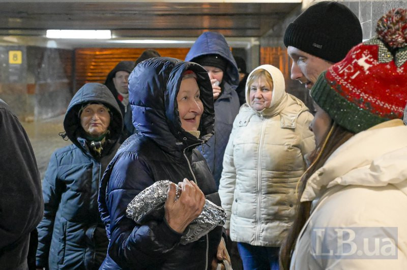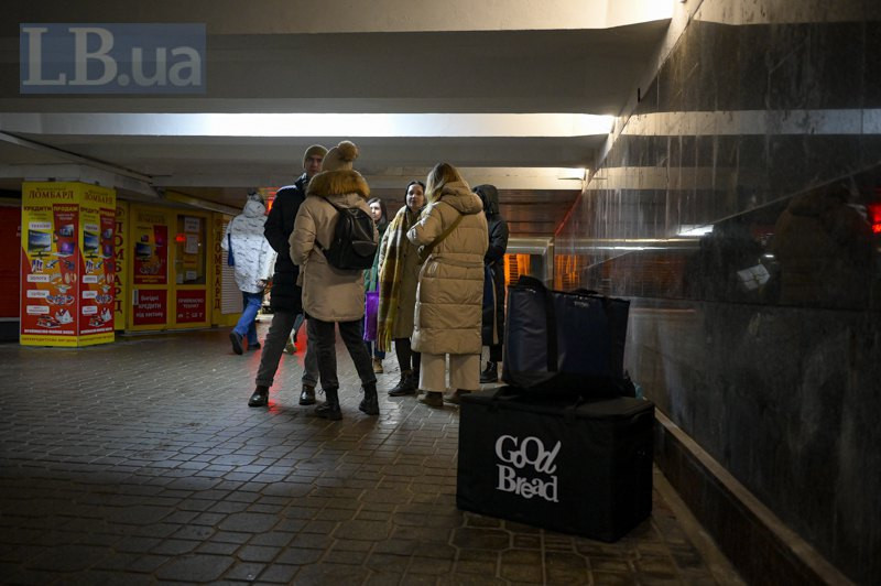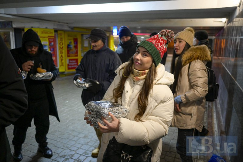 У підземному переході на Майдані Незалежності вже о 19:30 зібралася група людей — тут і GoodBread, і хлопці й дівчата зі Спільноти святого Егідія, які привезли термоси з чаєм і пакунки із солодощами.