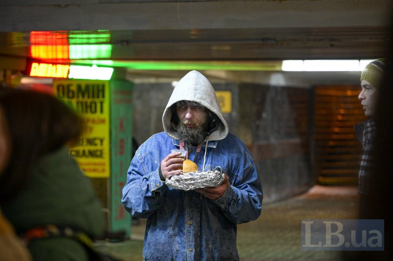 За декілька хвилин до них уже підходять люди по обід. Це ті, яким іти найближче — вони зазвичай тут, у переході, й мешкають.