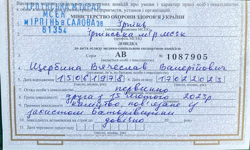 Фото: надано сім’єю Вячеслав Щербина, МСЕК, ІІ група