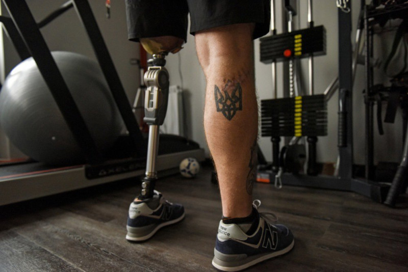 «Мене відвіз побратим у лікарню. Там прооперували, два уламки дістали — потрапили в мʼяку частину стегна, кістку не зачепило, але почався тромбоз артерії. Одна вена, яка відповідає за відтік крові, закрита. Якщо зняти компресійну панчоху, наливається, темніє, кров туди йде, а відтоку немає і нога холодна завжди. Коли кров не надходила, відбулася ішемія — відмирання нервів», — згадує Дмитро.