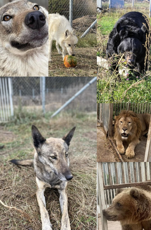 Фото: facebook.com/SaveWildFund Тварини, врятовані волонтерами і військовими від війни, які з початку повномасштабного вторгнення пройшли через притулок «Біла скеля»