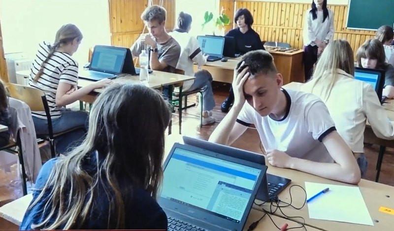 Фото: скрин відео Учні Мукачівської школи проходять мультитест-онлайн наближений до реального НМТ