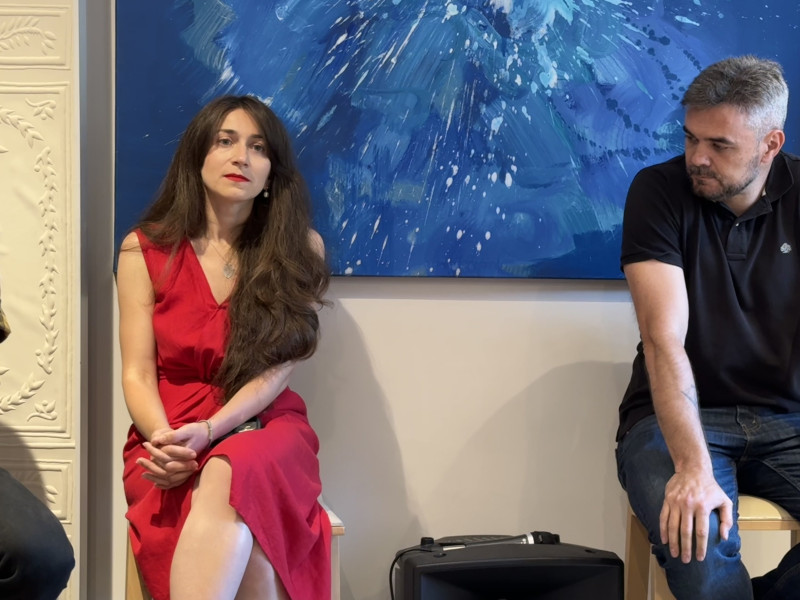 Від українських колег випало говорити мені. Я не є ані публічною, ані відомою людиною, хоча працюю воєнною кореспонденткою для міжнародної преси вже 10 років. Я коротко розповідаю власну історію – роботи на війнах і порятунку моєї сімʼї під час повномасштабного вторгнення. Війна зачепила мою сімʼю: дім моїх батьків окупований, батько мого сина вбитий росіянами.