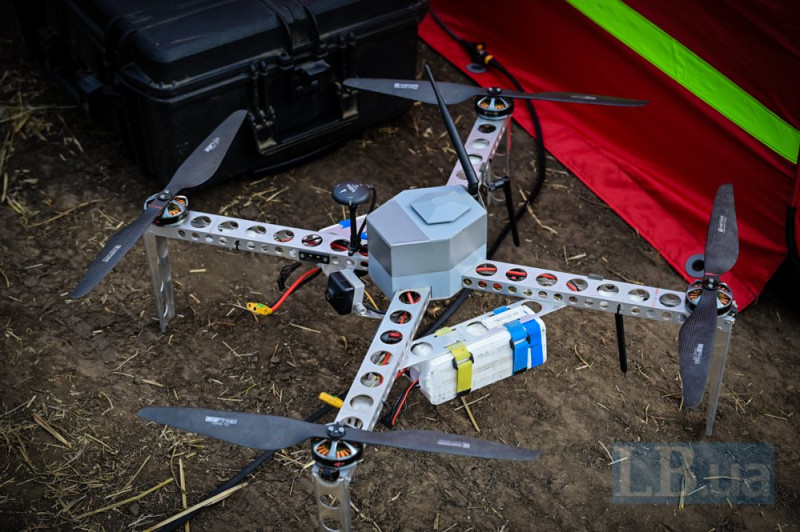 Агродрон використовує команда благодійного фону «ПОСТУП». Але не з гербіцидами, а з магнітометром. Їм вдалося прикріпити прилад до безпілотника так, щоб покращити показники сканування в 40 разів.