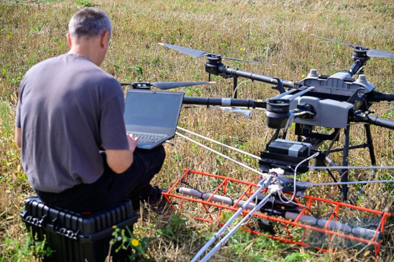 «Магнітометр не нова система, але за рахунок нашого обладнання, яке відводить пристрій на 2,5 м від дрона, зникають перешкоди під час обробки інформації, і ми маємо майже кришталево чисті дані. Бо якщо просто прикріпити магнітометр до дрона (який має металеві елементи. – Ред.), там дуже багато перешкод і буде важко визначити, що лежить у землі», – розказує Руслан Рябченко, інженер проєкту.
