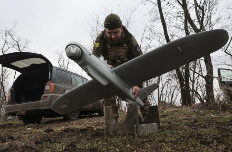 Фото: EPA/UPG Військовослужбовець 108 бригади тероборони готує безпілотник «Лелека-100» до використання на полі біля лінії фронту на Запорізькому напрямку, 15 лютого 2024 р.