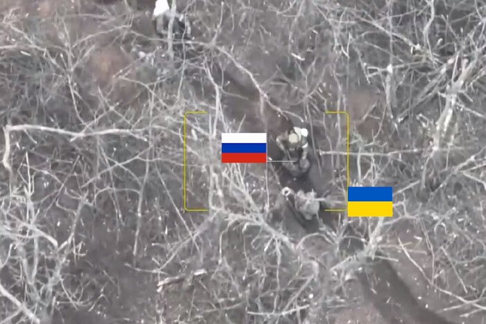 Фото: Главком На відео з дрона видно, як окупант кілька разів стріляє в українських бійців