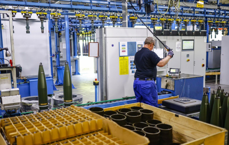 Фото: EPA/UPG Виробництво 155-мм артилерійських снарядів на заводі Rheinmetall , Німеччина, 06 червня 2023 р.