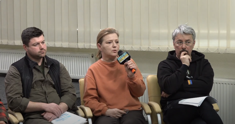 Фото: youtube.com/@UkrinformTV Олександр Порхун, Юлія Лапутіна й Олександр Ткаченко на презентації проєкту військового кладовища в березні