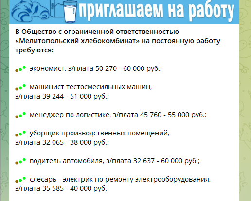 Вакансії і зарплатня. Джерело: окупаційний центр зайнятості Мелітополя
