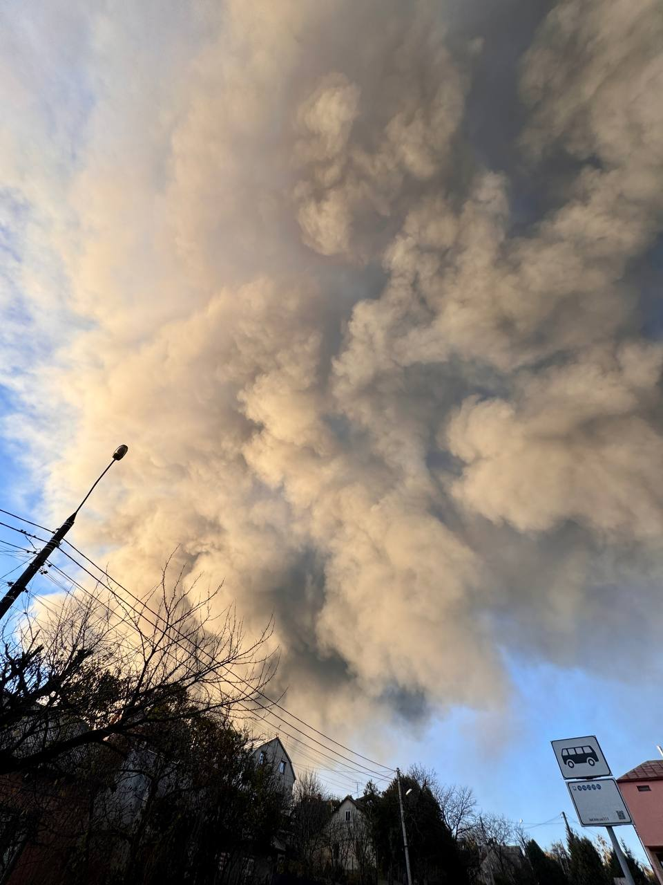 Міський голова Андрій Садовий повідомив, що дим, який спостерігається над Львовом, спричинений займанням шин у цивільних складських приміщеннях, куди влучила російська ракета.